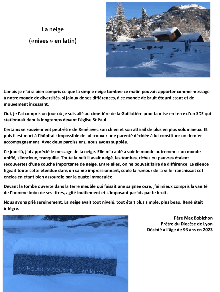 Merci de nous partager ce beau témoignage du Père Max, C’est bien sûr d’actualités avec le givre et les monts enneigés !