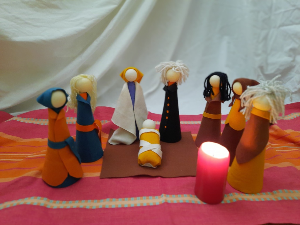 On trouve des crèches de toutes tailles, en différentes matières. En bois, en plâtre, en pierre taillée, en poterie, en papier, en plastique, en tissu, les personnages et les lieux de l’événement historique sont représentés. Parfois aux personnages historiques, des personnages contemporains sont ajoutés dans la crèche, ils représentent les situations de la vie, les conditions de vie, les comportements d’aujourd’hui. Ainsi l’étable devient parfois une maison délabrée, la mangeoire devient barque, ou trône…N’est-il pas vrai qu’en tous lieux, en tout pays, en toutes situations, tout être humain est concerné par l’événement de la naissance qui s’est déroulée dans la crèche ?