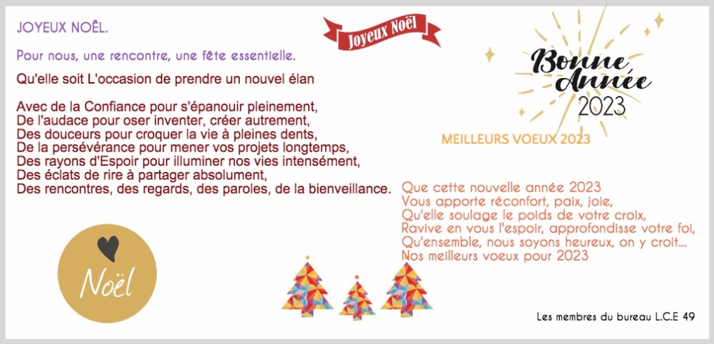 Merci LCE49 pour vos bons voeux! de la joie, de la lumière, de l’espérance pour vous à Noël!