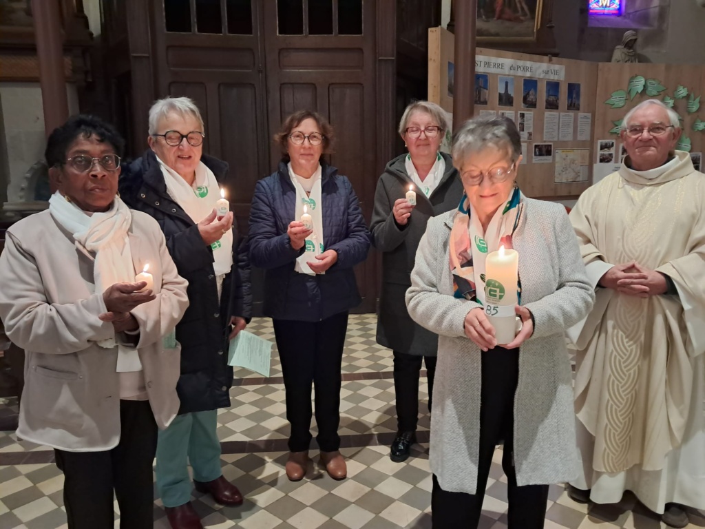 Quatre bougies, représentants la paix, la foi, l’amour et l’espérance, portées procession d’entrée nous rappellent les 40 ans de l’association, 40 ans de sourires, de service et d’espérance célébrés à Lourdes cette année.