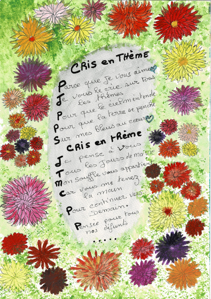 Pour le défi challenge du mois de novembre, la délégation 50 s’est mobilisée : Colette et Jacqueline ont copié et illustré les textes « Cris en thème » et « Seigneur ».